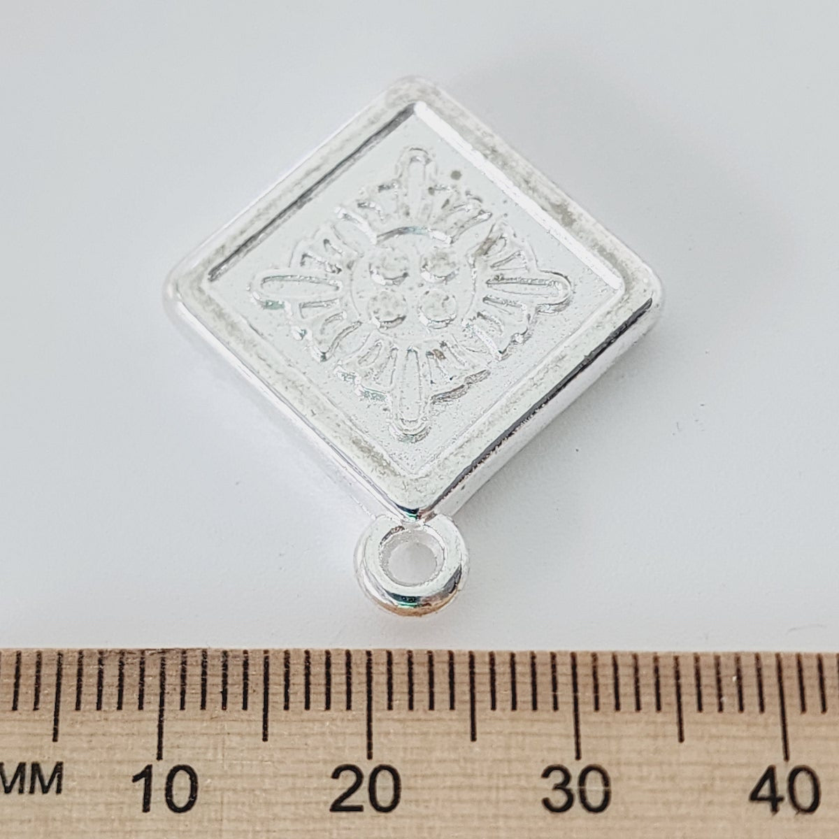30x17mm Tribal Square (10) - Silver - Vintage Metalised Pendants