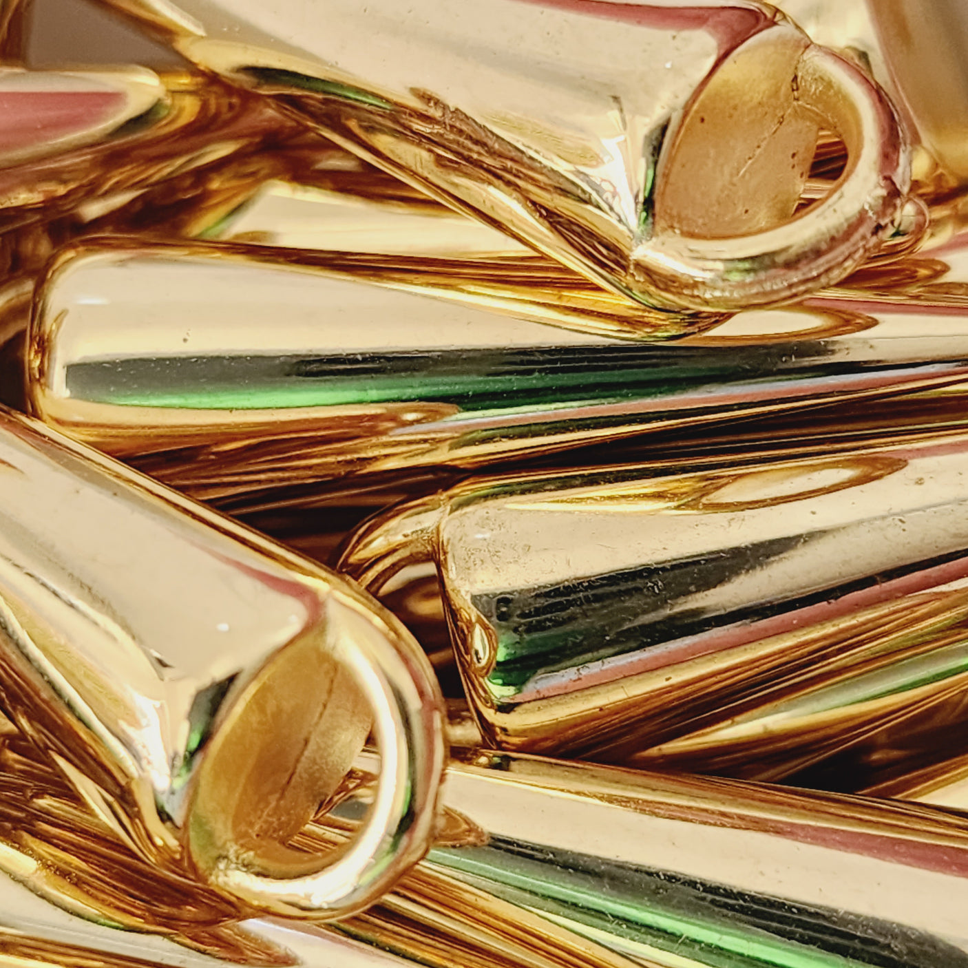 Use metalised beads when you want the look of metallic, but don't want the heavy weight of using metal beads. Large metal beads will certainly weigh down your decorations, necklace pieces, or earrings! Use these in place of metal, and you will be delighted with the result. (They also don't have the price tag of metal beads!)