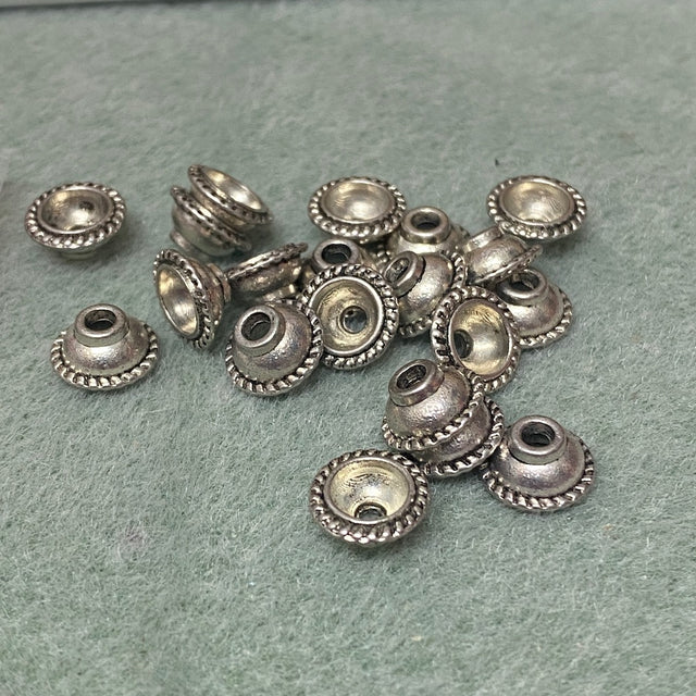 10mm Bead Cap (50) - Antique Silver - Tibetan