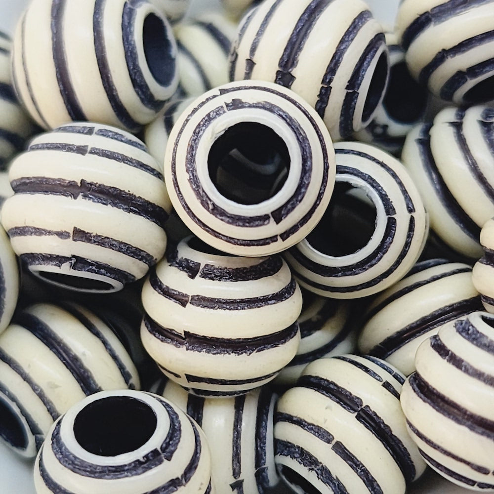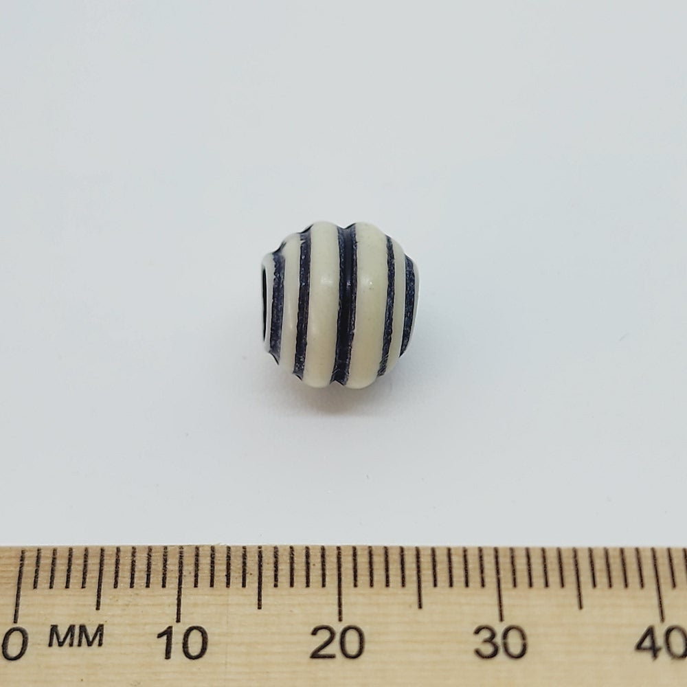 10mm Round (10) - White w. Black - South Western Style Vintage Beads