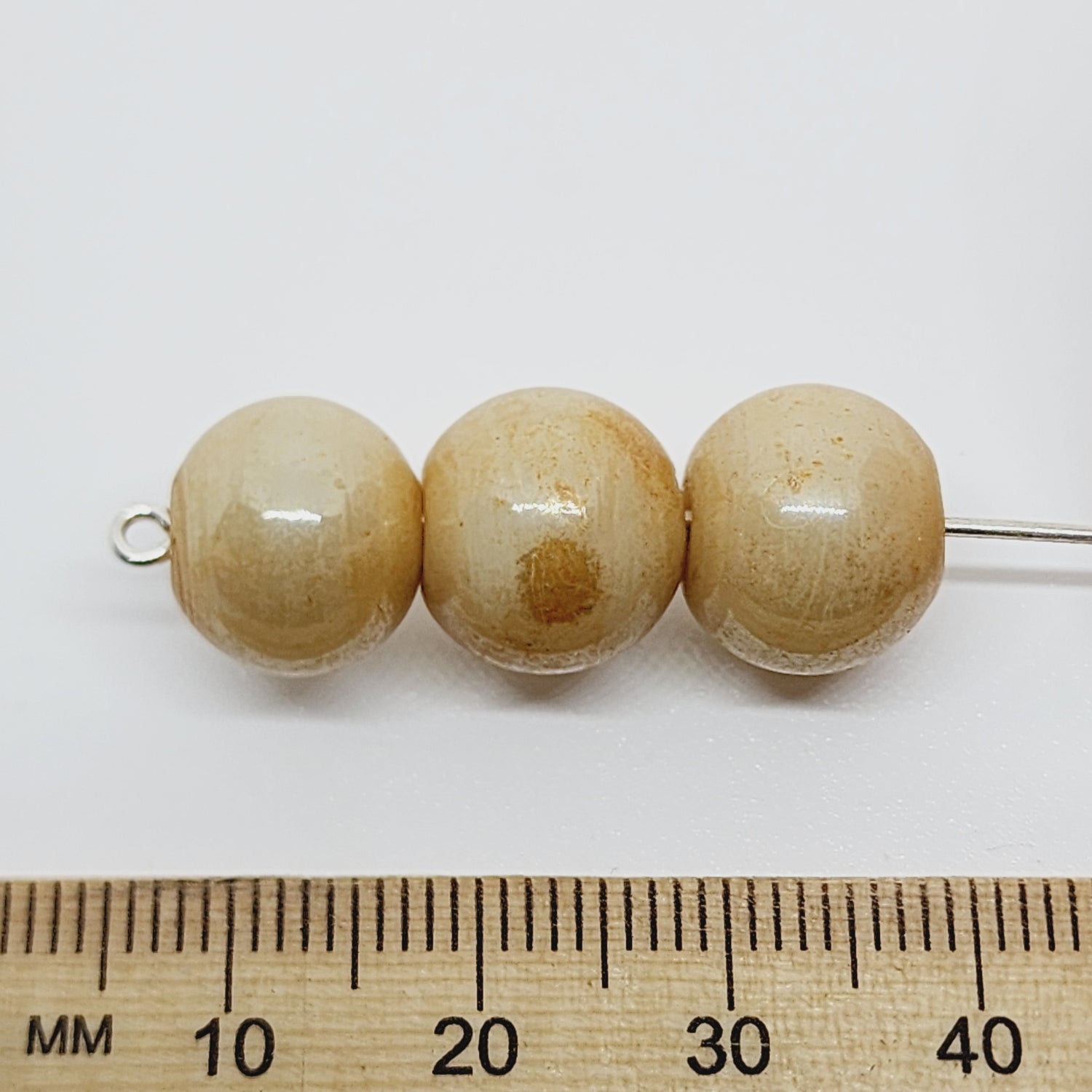 10mm Round (25) - Opaque Dark Cream Lustre - Indian Glass Vintage Beads