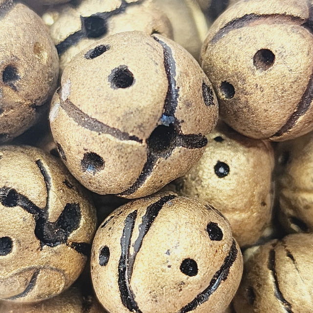 12~15mm Round Beads (10) - Antique Gold w. Black - Vintage Clay Beads