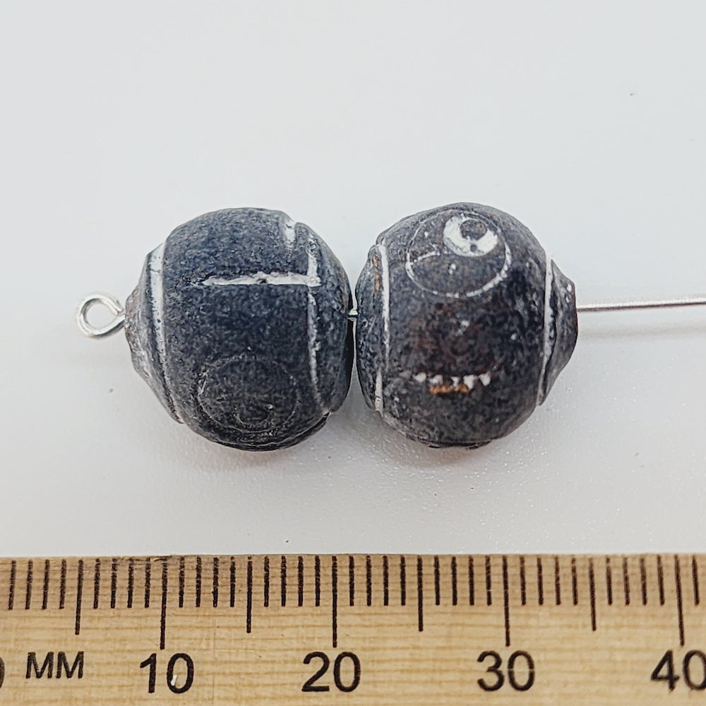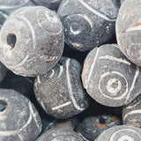 12~15mm Round Beads (10) - Black w. Spirals - Vintage Clay Beads