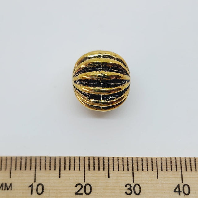12mm Melon (10) - Antique Gold - Vintage Metalised Beads