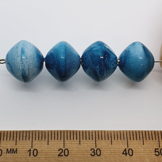 12x14mm Rondelle (25) - Blue - Vintage Pastel Marbled Effect Beads