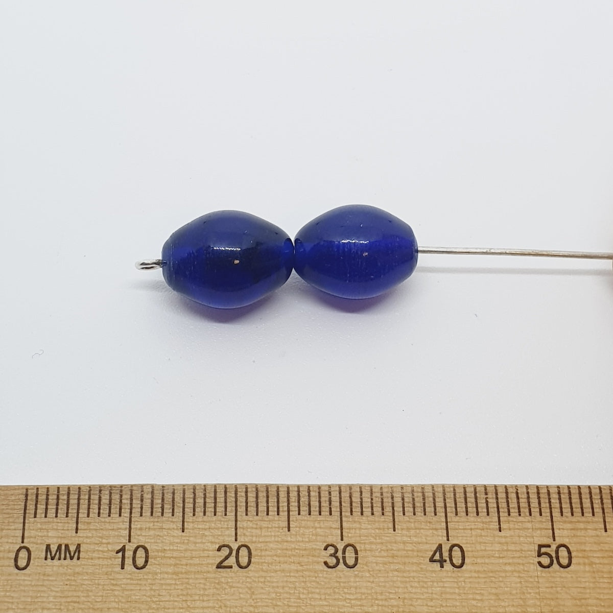 12x9mm Oval (25) - Opaque Blue w. Lustre - Indian Glass Vintage Beads