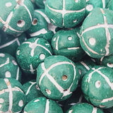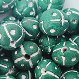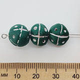 13mm Round Beads (10) - Green w. Cross & Dots - Vintage Clay Beads