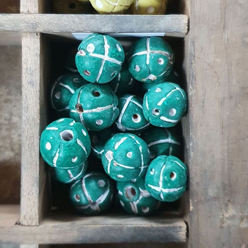 13mm Round Beads (10) - Green w. Cross & Dots - Vintage Clay Beads is backordered and will ship as soon as it is back in stock.