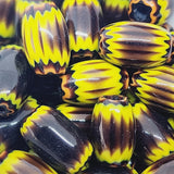 13x8~9mm Oval (10) - Aubergine & Yellow - Vintage Chevron Glass Beads