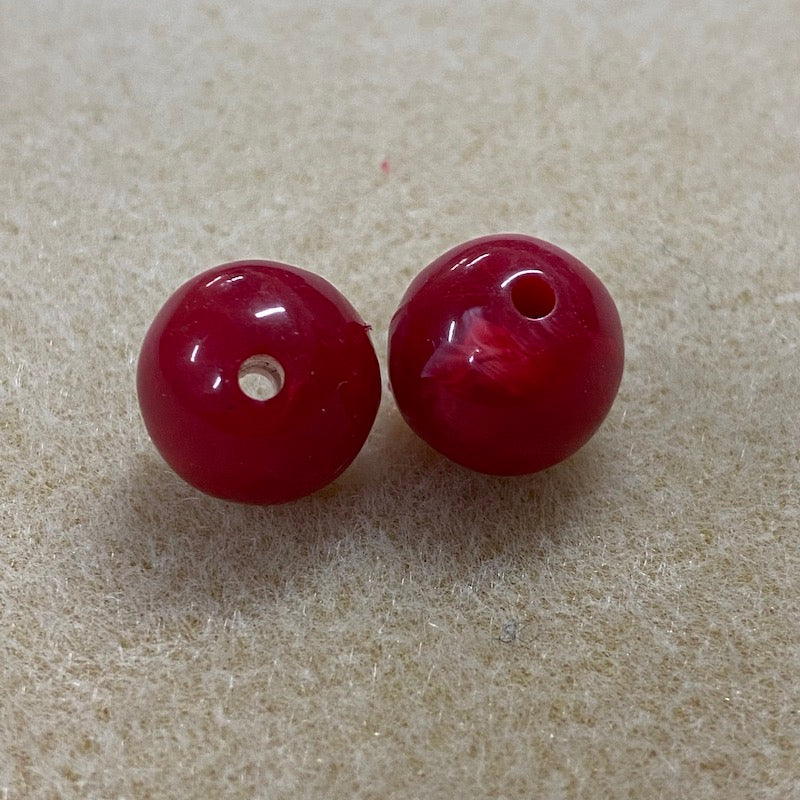 14mm Round (25) - Red - Vintage Opaque Marbled Effect Beads