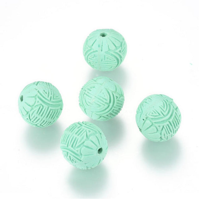 16mm Round (5) - Light Green - Cinnabar Oriental Carved Bead