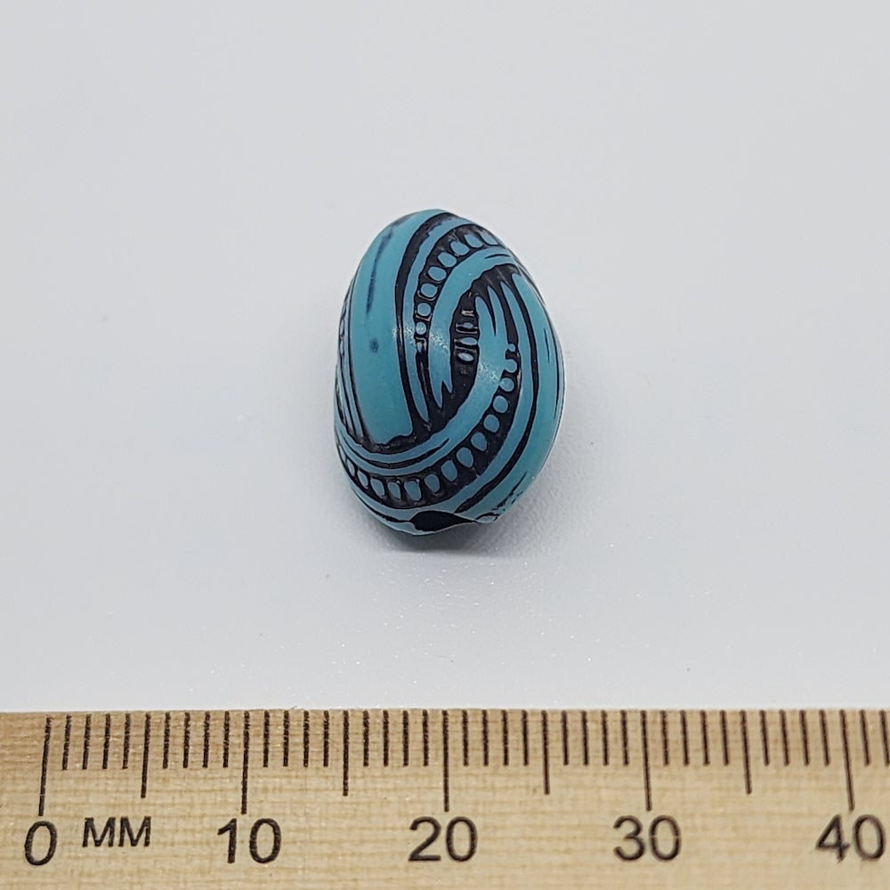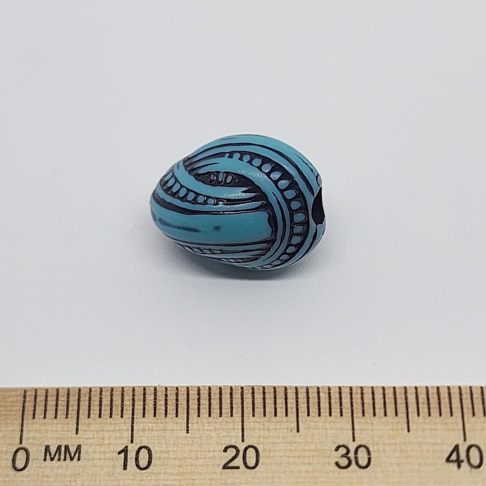 17x13mm Oval Knot (10) - Turquoise w. Black - South Western Style Vintage Beads