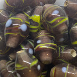 18mm Oval (10) - Transparent Purple w. Yellow Feathering - Vintage Glass Indian Lampwork Beads