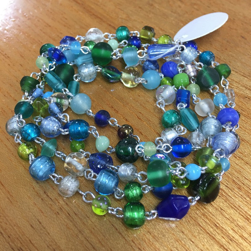 The sample necklace (or you can make multiple strands for a bracelet) has been made with these little eyepins. Saves so much time not having to trim all the pins!