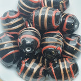 19x14mm Oval (10) - Black Opaque w. Aventurine & Red - Glass Vintage Replica Trade Lampwork Beads