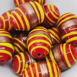 19x14mm Oval (10) - Red Opaque w. Aventurine & Yellow - Glass Vintage Replica Trade Lampwork Beads