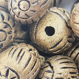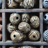 These clay beads are very old stock from a warehouse clearance, that we scooped up years ago.  You won't find beads in many places that are like these!  Truly unique handmade beads!  These beads were made individually by hand in Ghana, Africa.