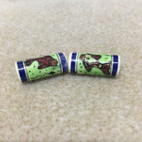 20x8mm Tube (2) - Fish - Ceramic Hand Painted Vintage Beads