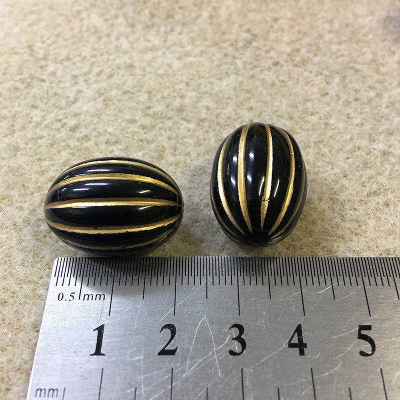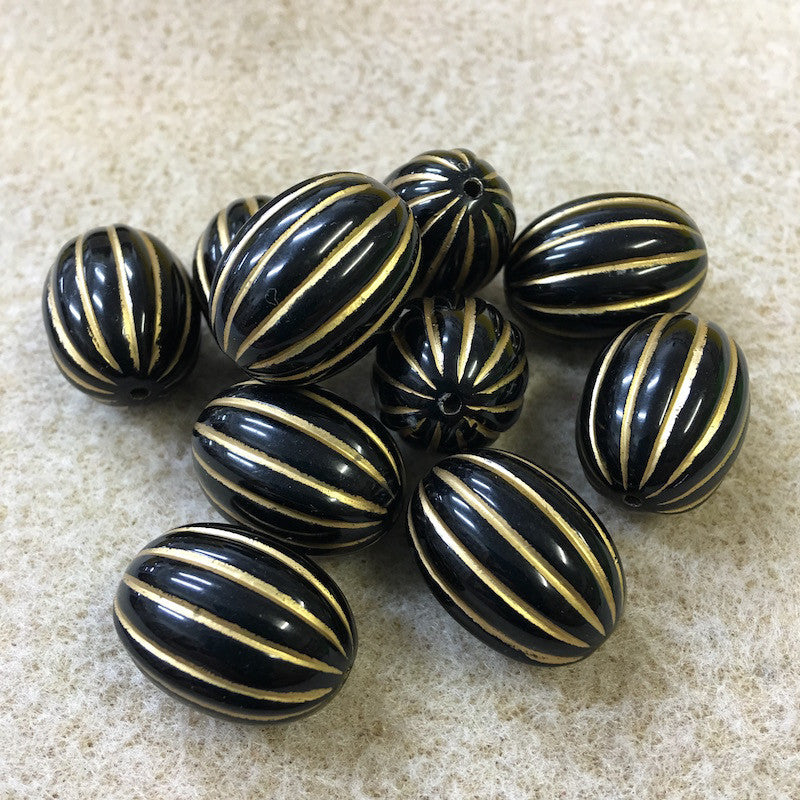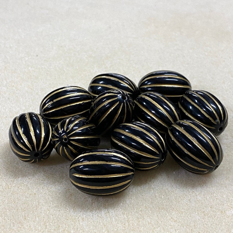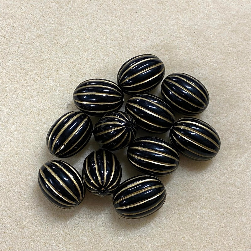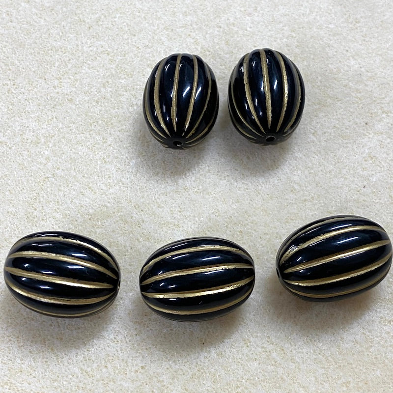 22.5x16mm Oval (10) - Black/Gold - Vintage Art Deco Style Lucite Beads