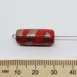 23x10mm Tube (10) - Red Opaque w. Aventurine - Vintage Handmade Glass Lampwork Beads