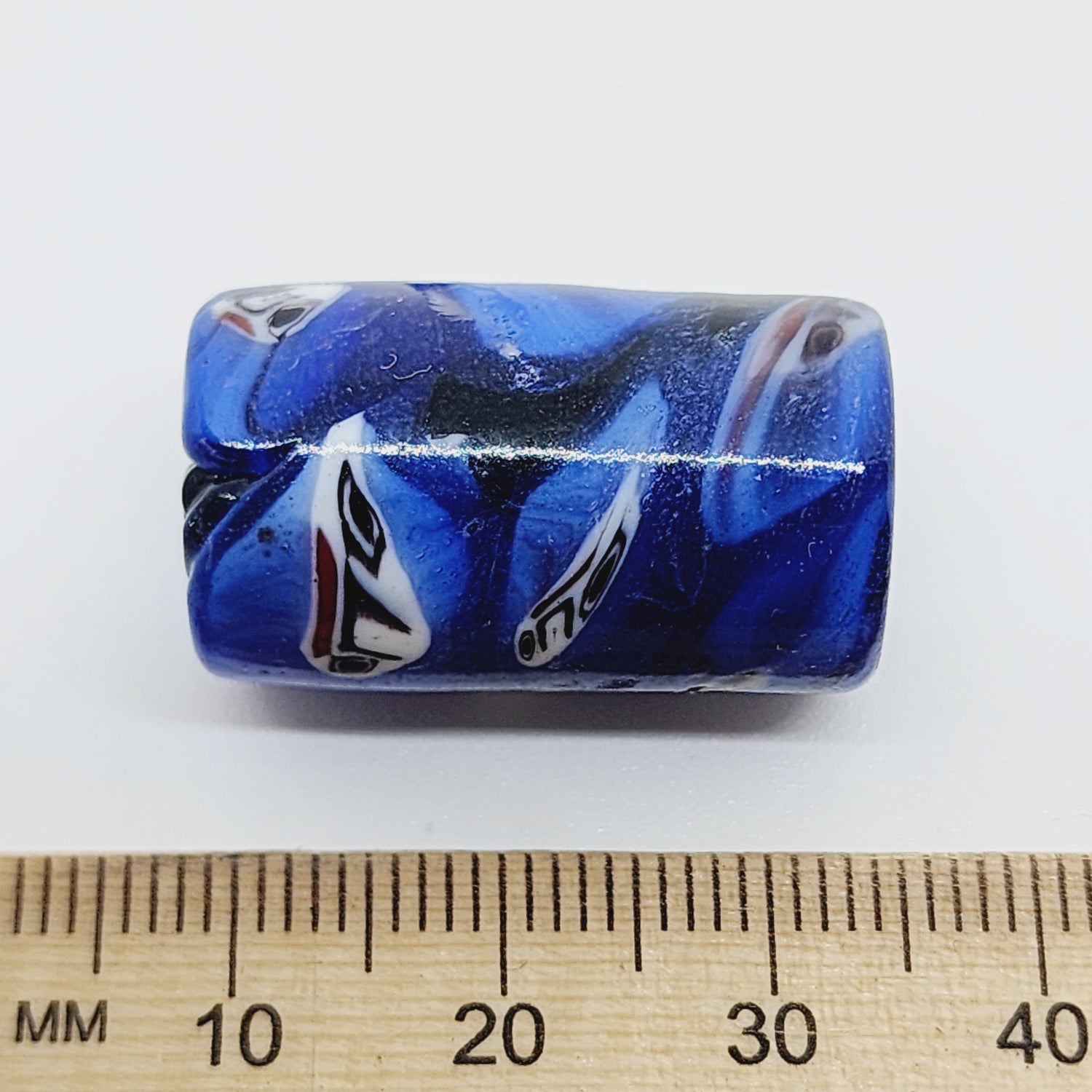 24mm Tube (5) - Blue w. Faces (Furnace-Wound)- Glass Vintage Trade Beads