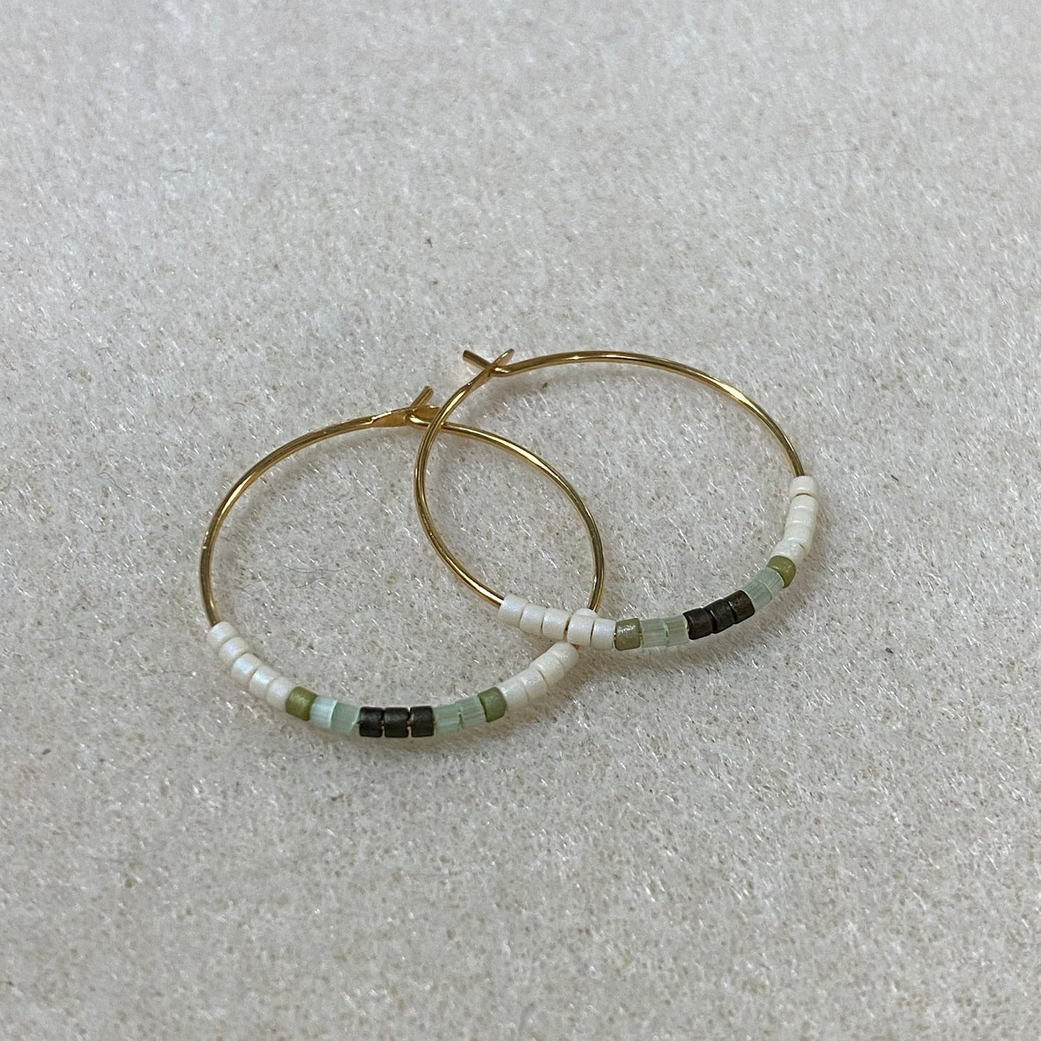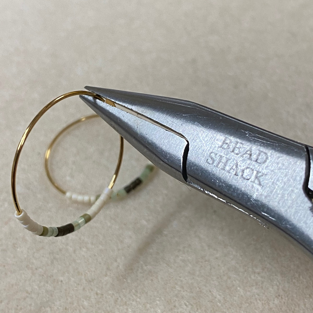 These loops measure 25mm across. Bead them with your own design, then turn the end 90 degrees so that it catches in the 'eye' on the other end.
