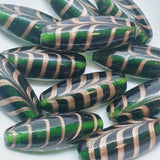 25x10mm Oval (5) - Green Transparent w. Aventurine - Glass Vintage Replica Trade Beads