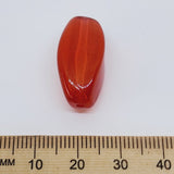 The shape of these is quite unique, being a cross between an oval and a rectangle. The beads have no visible seam, but every now and then you can see a slight spot where they may join. There are 4 sides to the bead, and each side has a series of 'cut' or 'scratch' looking little lines in them. You can actually put a fingernail into the crack to feel it. Each side of the bead has a different pattern to the little lines. It's the subtle detail in these beads that is really surprising. You will be very pleased to have found these beads as they are nothing like any other bead we have seen to date.
