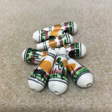 28x9mm Teardrop (5) Ochre - Ceramic Hand Painted vintage Beads