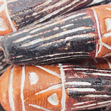 These clay beads are very old stock from a warehouse clearance, that we scooped up years ago. You won't find beads in many places that are like these! Truly unique handmade beads! These beads were made individually by hand in Ghana, Africa a long time ago.
