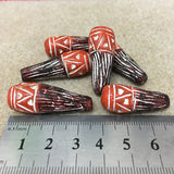 30mm Teardrop (10) - Red w. Black & White - Vintage Clay Beads