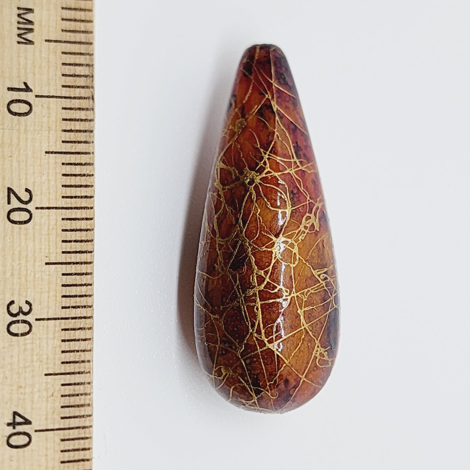 33x14mm Teardrop (2) - Brown Bubble Glaze Look w. Gold Drizzle - Vintage Lucite Beads