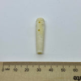 A light cream bead shaped like a cone - tapering at one end and with etching all the way along.