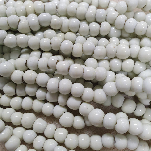 5~6mm Round - White (with yellowish tone) Opaque - Java Glass Lampwork Beads - (1 strand)