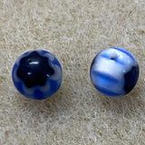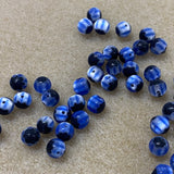 6mm Cross Drilled Round (25) - Blue & Black - Vintage Chevron Glass Beads
