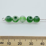 6mm Cross Drilled Round (25) - Lt Green & Dk Green- Vintage Chevron Glass Beads