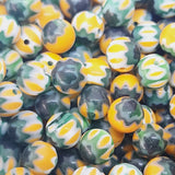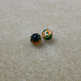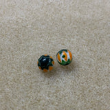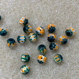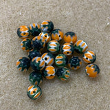 6mm Cross Drilled Round (25) - Orange & Green - Vintage Chevron Glass Beads