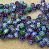 6mm Round (25) - Blue, Green & Red - Vintage Chevron Glass Beads