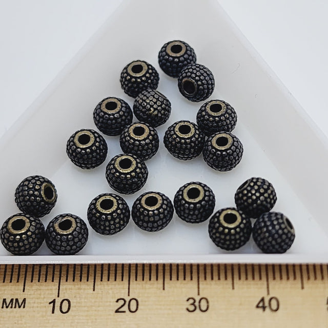Around the sides of the beads, little round dots are raised up and give a stunning effect.  You will love using these beads on necklace leather cords (especially for male jewellery) for a more rugged look.