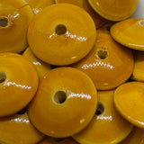 Gorgeous and lustrous, the bead has an ochre yellow colour, kind of a cross between brown/orange/yellow colour. A fabulous colour to use on any tribal type of design!