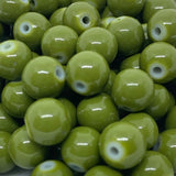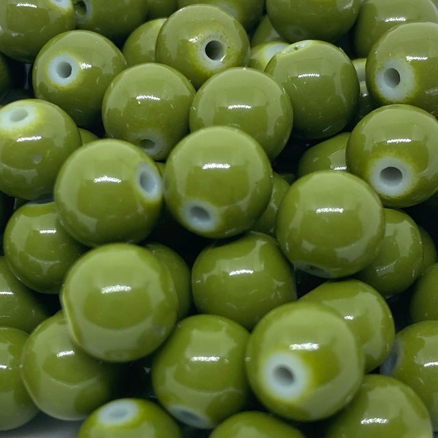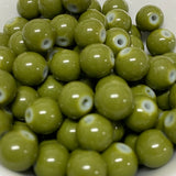 8mm (108) - Olive Green Opaque - Round Glass Bead