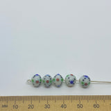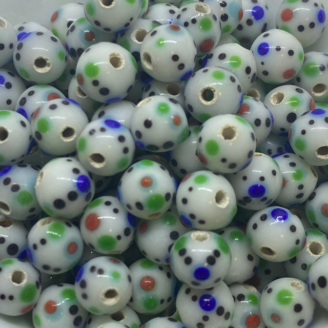 8mm Bead (10) - White Opaque w. Dots - Vintage Handmade Glass Lampwork Beads