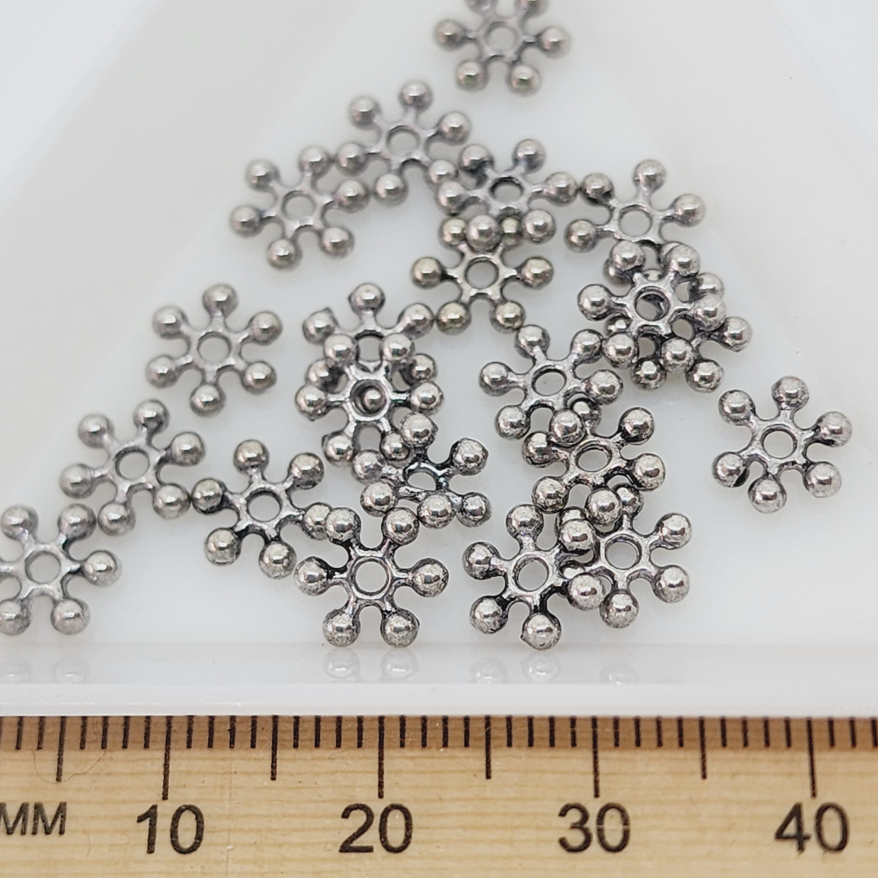 A great bead here for spacing and filling when threading your projects up! The little spokes have a small ball on each end, and look really good separating your feature beads. They are not too noticeable - rather just a small amount of silver or gold showing between your feature beads, which can give a great effect. Sometimes you need something other than a regular round spacer bead!