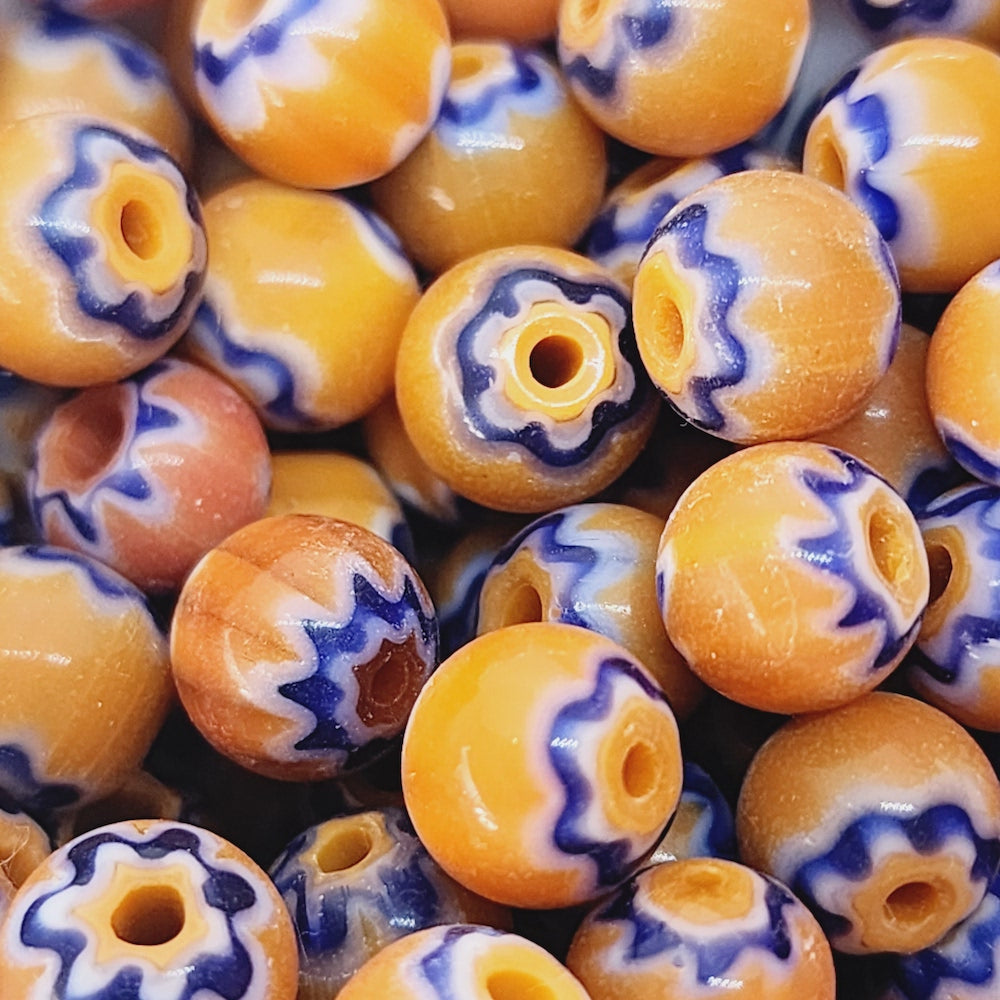 8mm Round (25) - Orange & Blue - Vintage Chevron Glass Beads