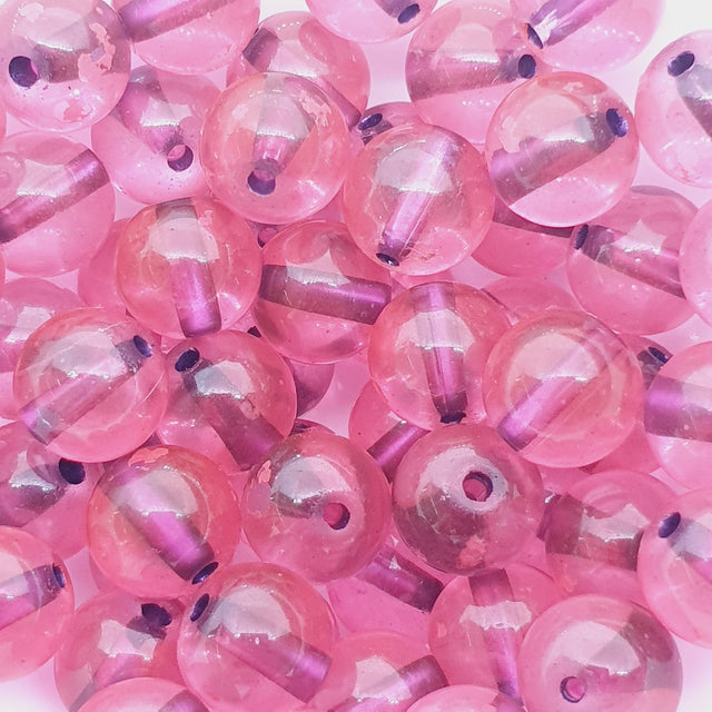 8mm Round (25) - Pink Transparent w. Purple Core - Glass Beads