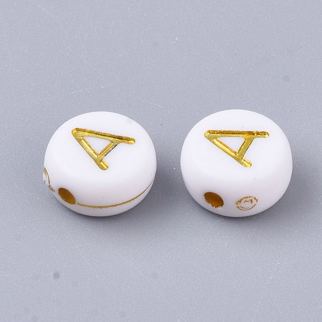 Alphabet Letter Beads (White/Gold) - A - 10 is backordered and will ship as soon as it is back in stock.