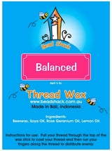 This BALANCED blend of thread conditioning wax includes Bees Wax, Soya Oil, Rose Geranium Oil & Lemon Oil.