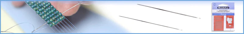 These needles are from Beadalon in the USA. They are English style hard beading needles, and are perfect for stringing beads with Nymo thread. Can also be used with Silamide stringing thread, and other threads which are fine enough to go through the eye! The needles measure 53mm (2 1/8 inches) long. Needles are sized in a similar way to seed beads so use the bead size as a guide to the needle you need (the higher the number, the finer the needle). Size 12 beading needles are a must for size 15/0 seed beads! A 12 needle is FINER than a 10.