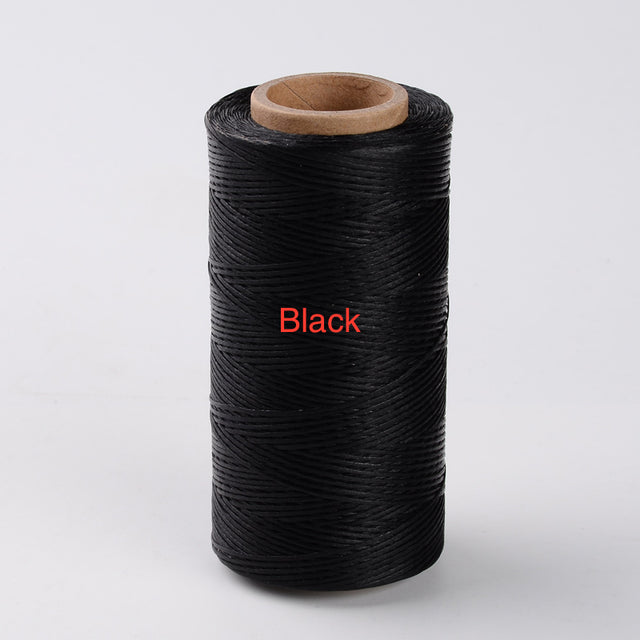 This quite heavily waxed polyester string is really thin. Being flat, it knots so well making it very easy to work with.