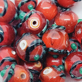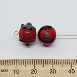 Candy Cane Bead (10) - Opaque Red w. Black, Green & Green - Vintage Handmade Glass Wedding Cake Lampwork Beads